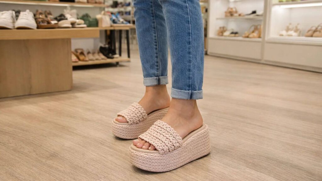 Se o ambiente permite um estilo mais casual, papetes podem ser uma opção confortável, principalmente em dias quentes. Aqui, o que manda é: estabilidade, tiras confortáveis e base segura.
